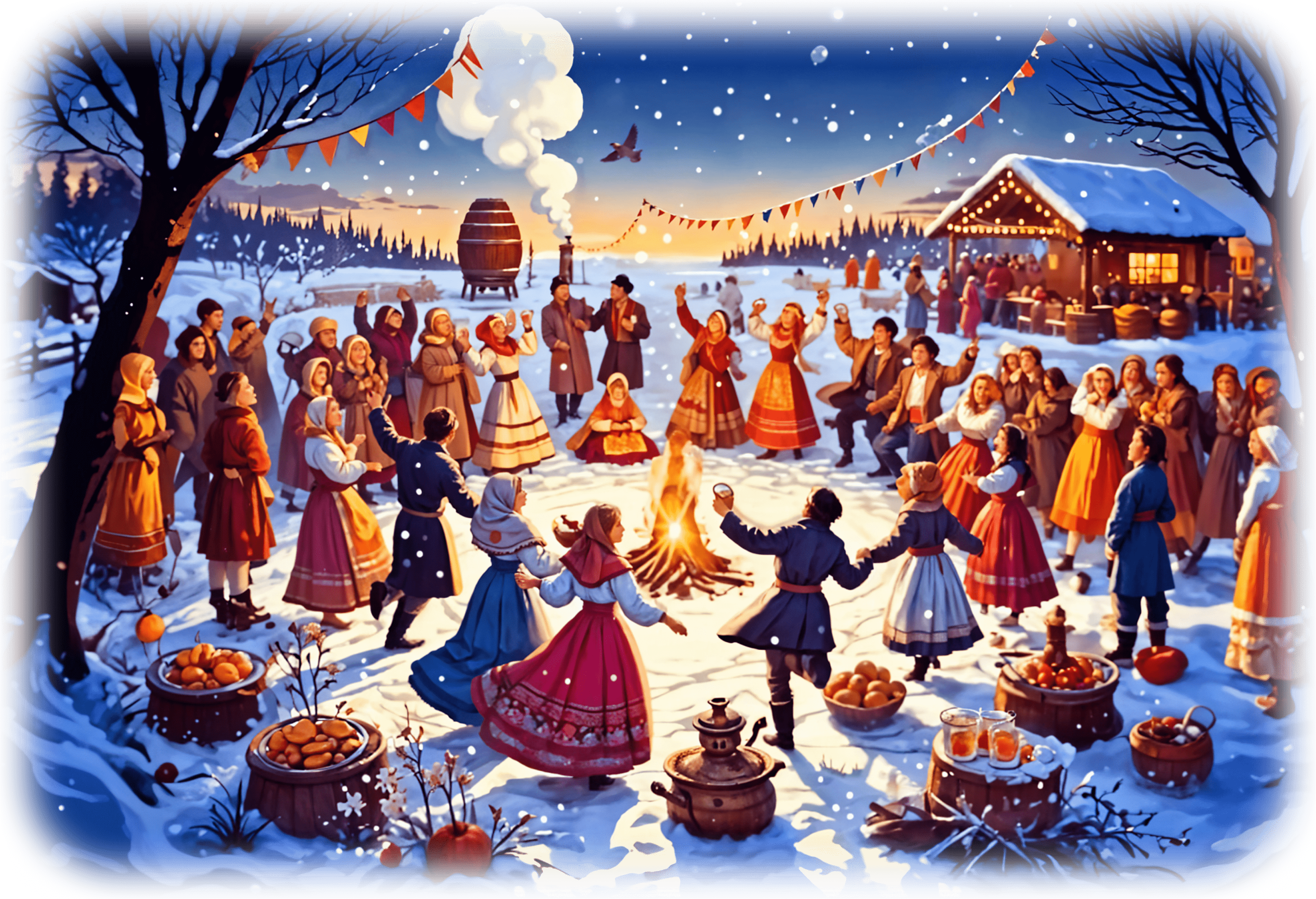 Участие в гуляниях, активностях и мастер-классах, блинная, чайная и какао церемония, ярмарка